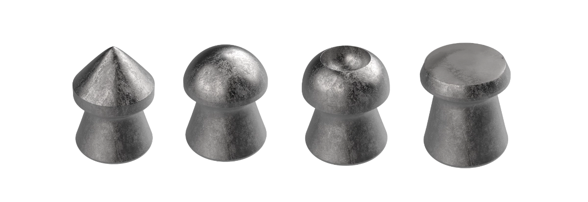 Pellets have a unique “diabolo” shape—with a solid head and a hollow skirt. When fired, that skirt expands slightly, helping the pellet grip the rifling inside the barrel.