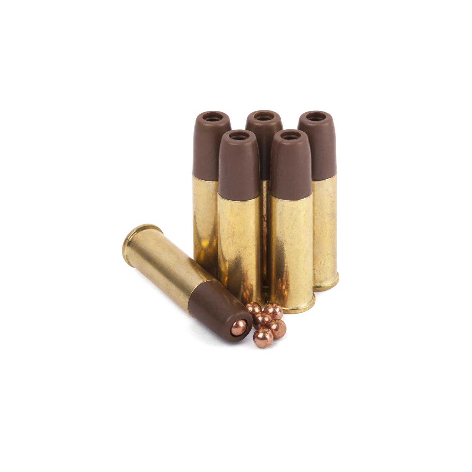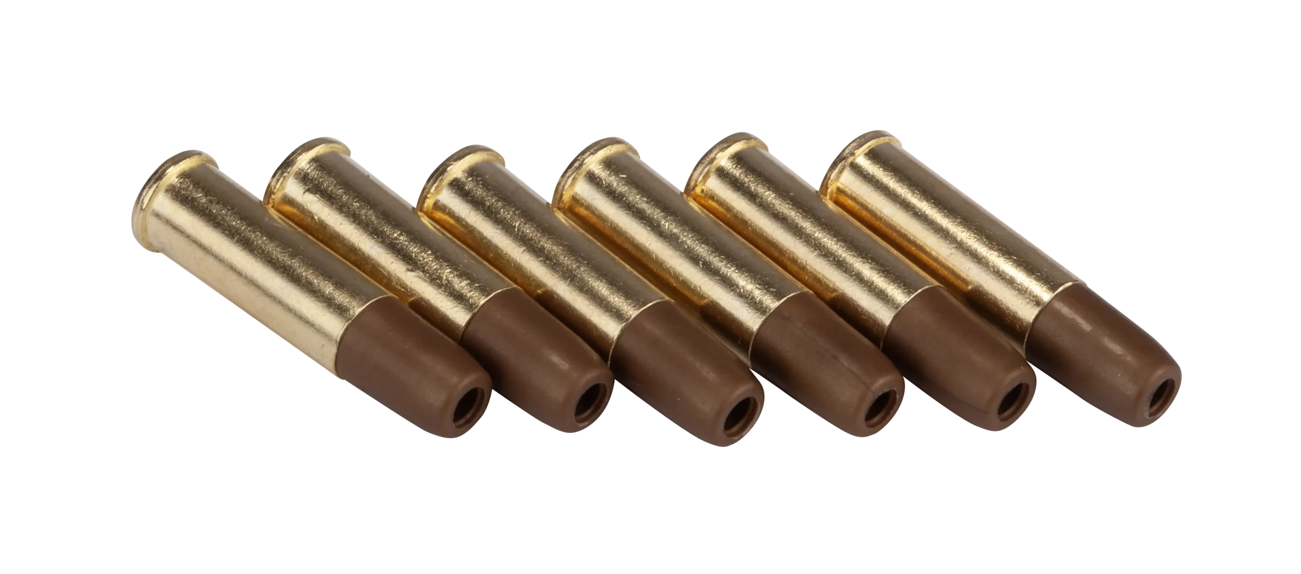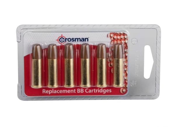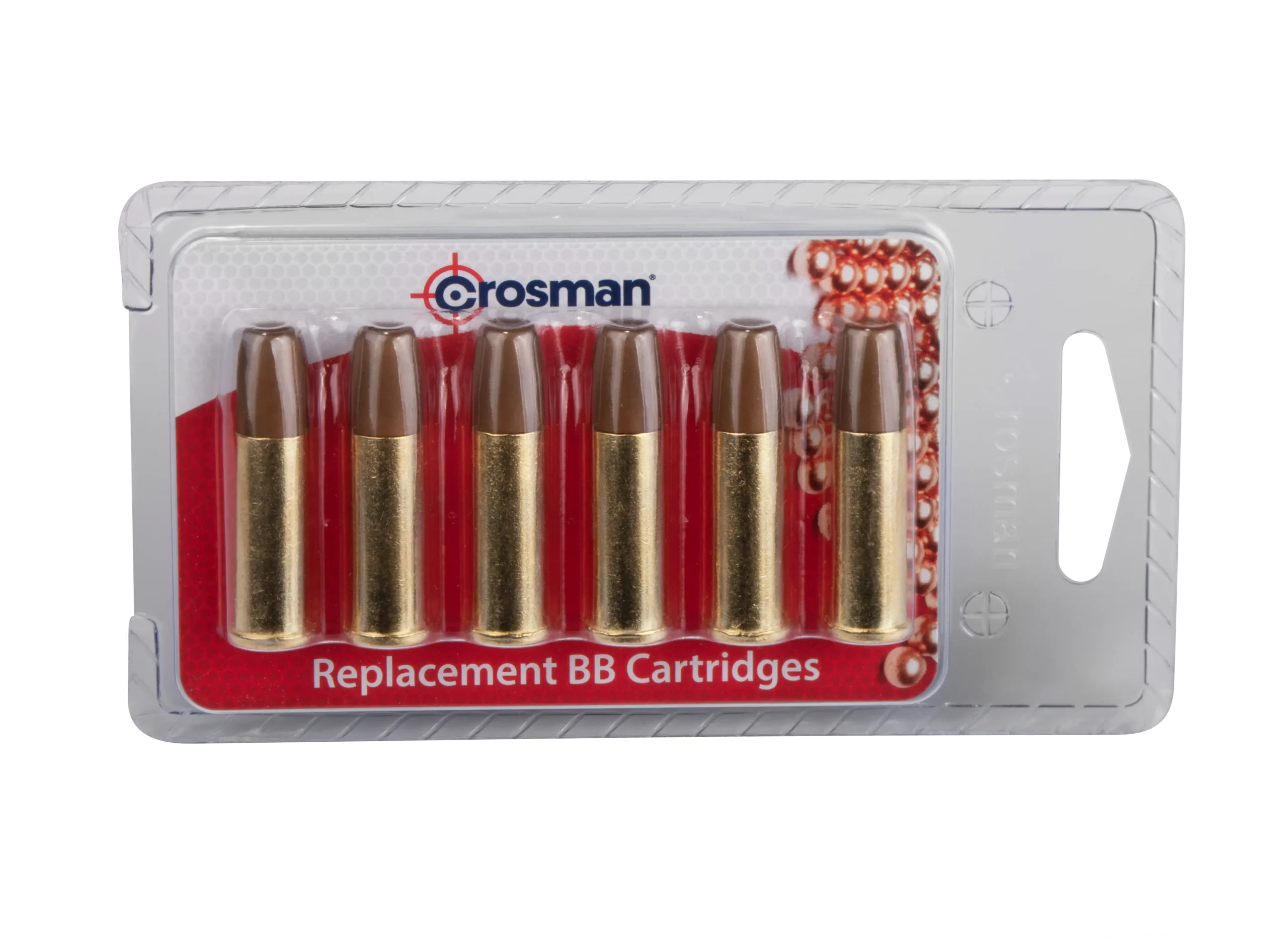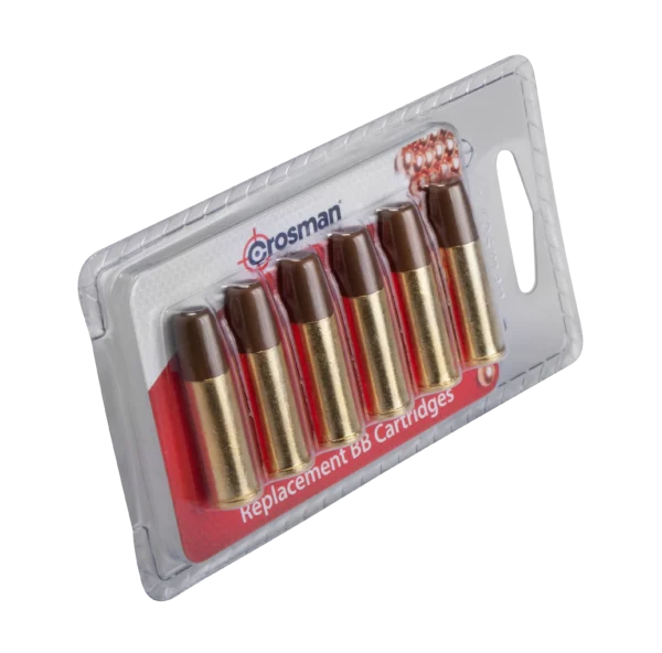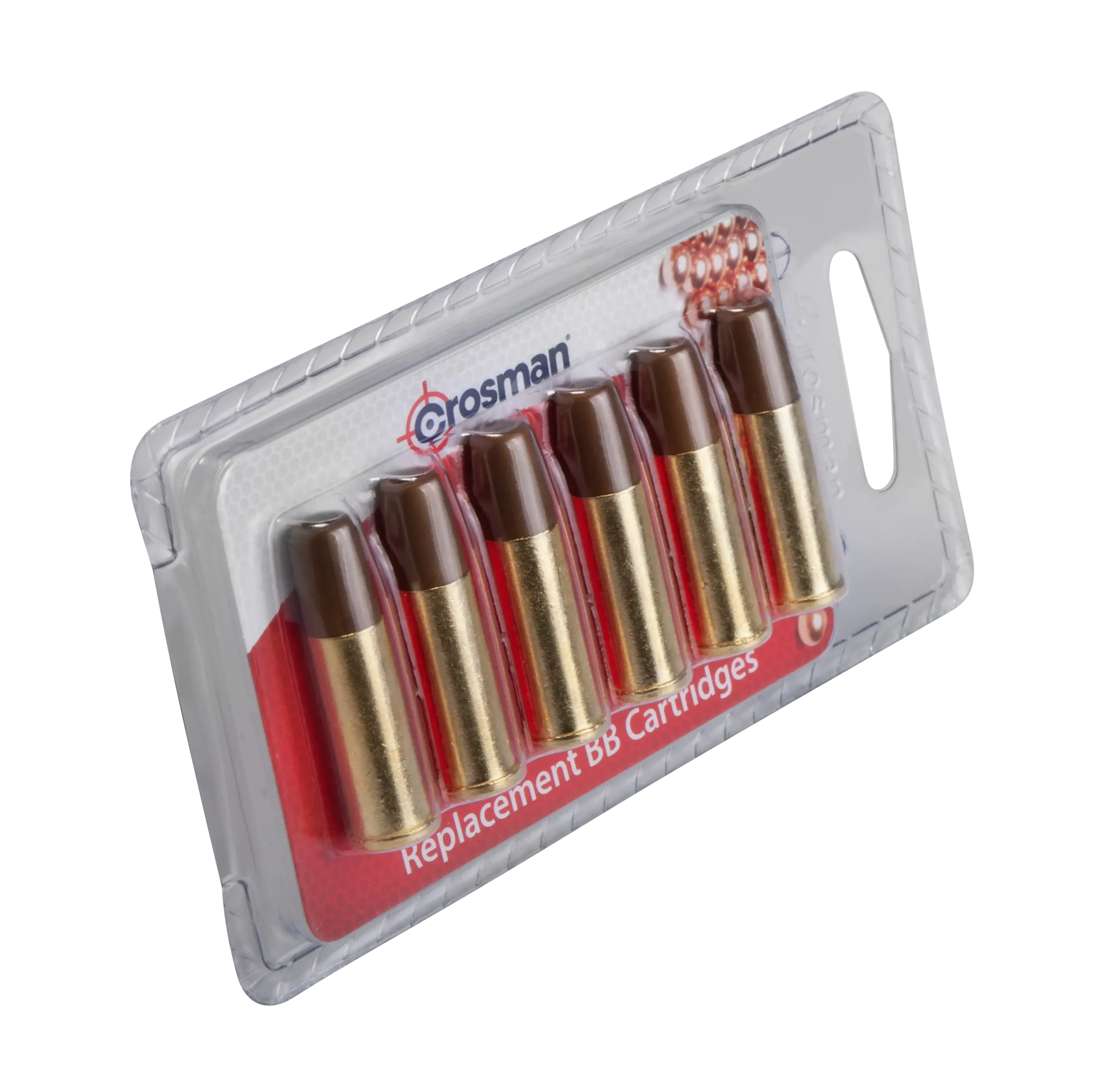 Six pack of BB cartridges for SNR357 dual ammo revolver. Also works for Remington RR1875 BB/pellet revolver and CRVL357B and CRVL357S BB revolvers.