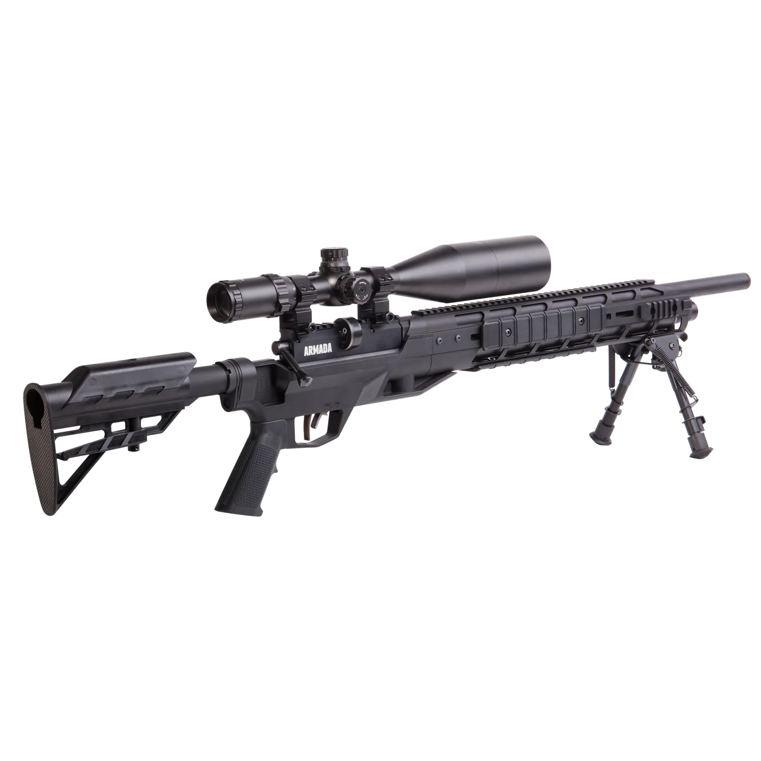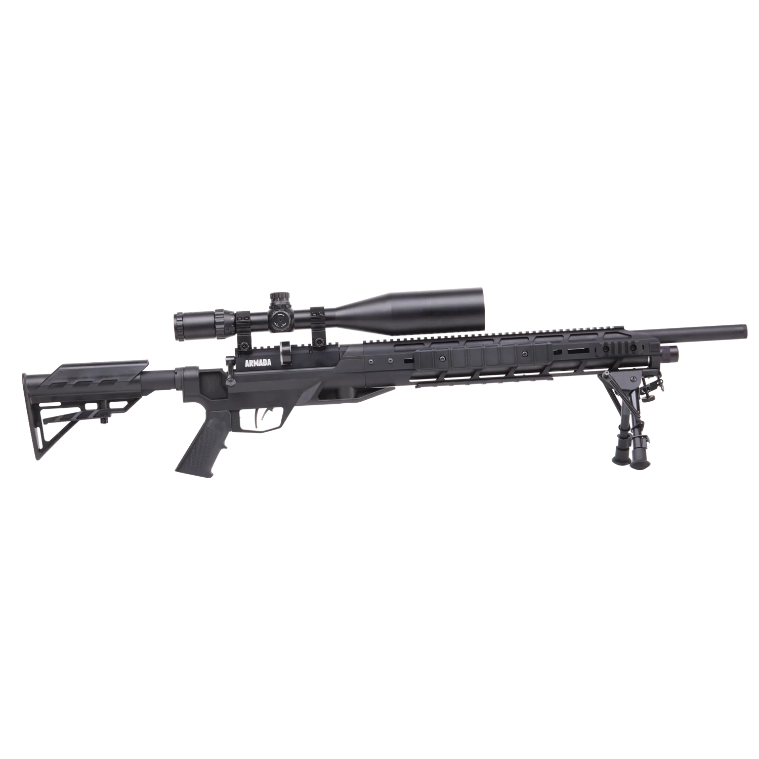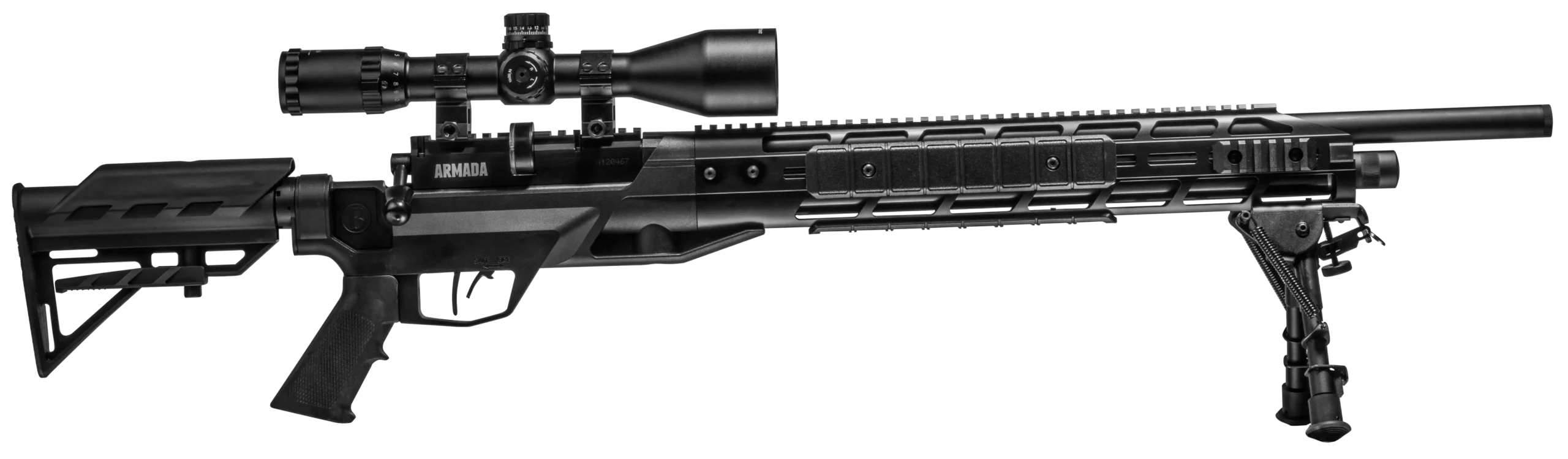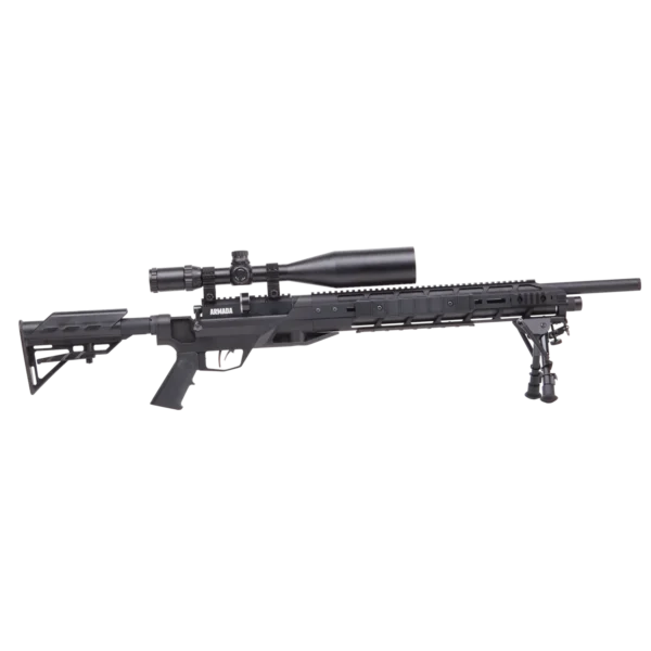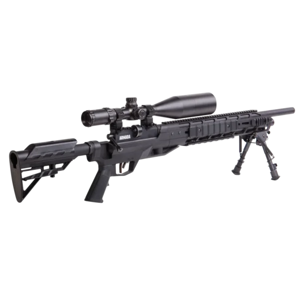 The Armada is a PCP Powered, Multi-Shot Bolt Action Hunting Air Rifle with M-Lok Interface, 4-16×50 Scope and Bipod