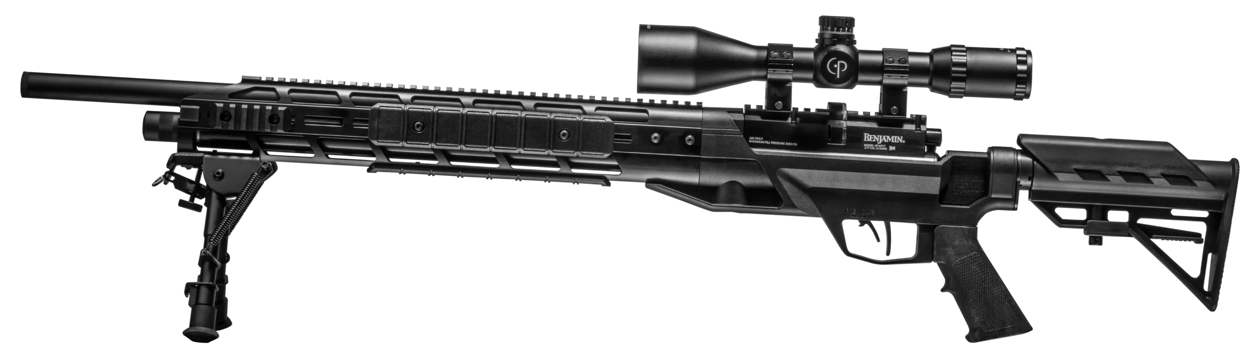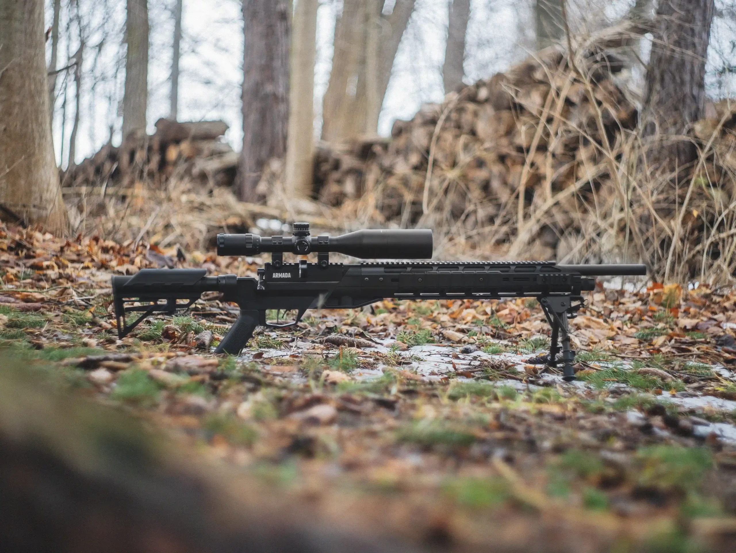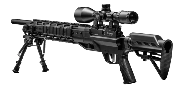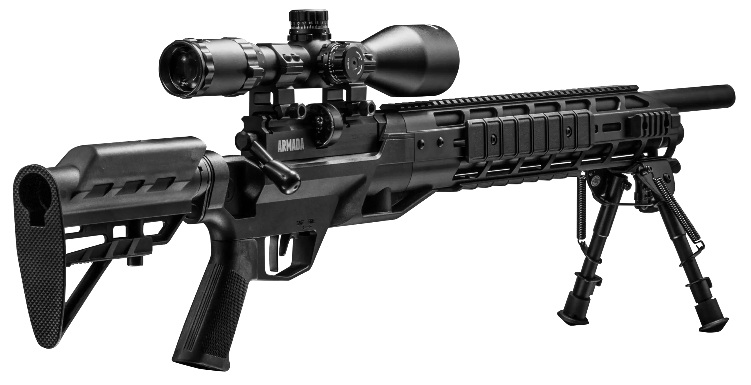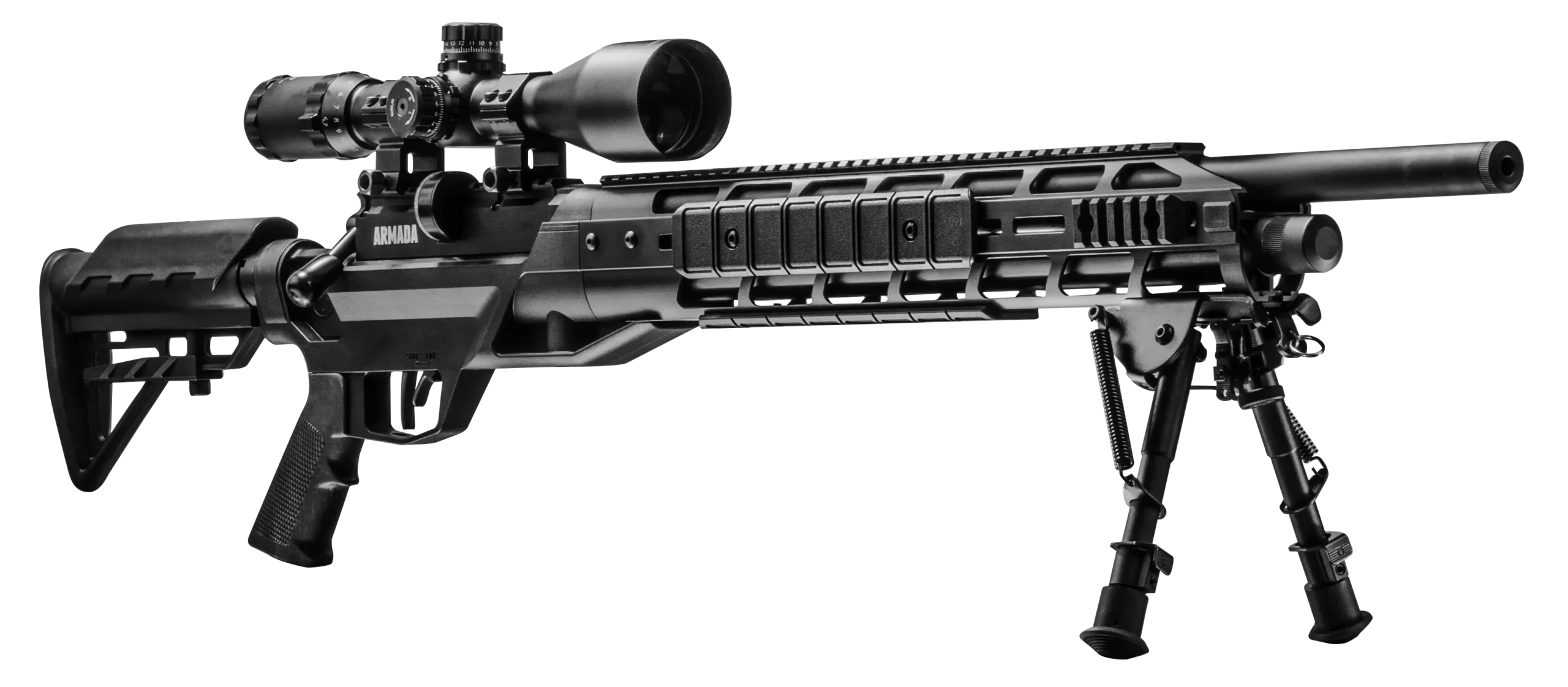 The Armada is a PCP Powered, Multi-Shot Bolt Action Hunting Air Rifle with M-Lok Interface, 4-16×50 Scope and Bipod