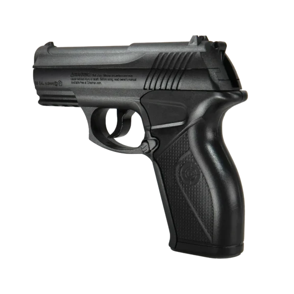 The C11 Semi-Auto CO2 pistol is a reliable and affordable option for target practice and plinking fun. This semi-automatic CO2-powered BB pistol combines hand-held comfort with quality components, delivering a velocity of up to 480 feet per second. With its sleek design and comfortable grip, the C11 offers a realistic shooting experience.