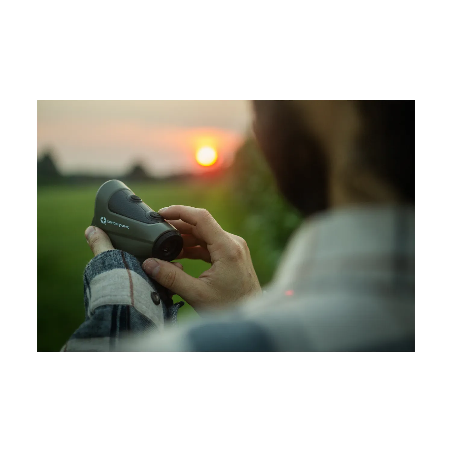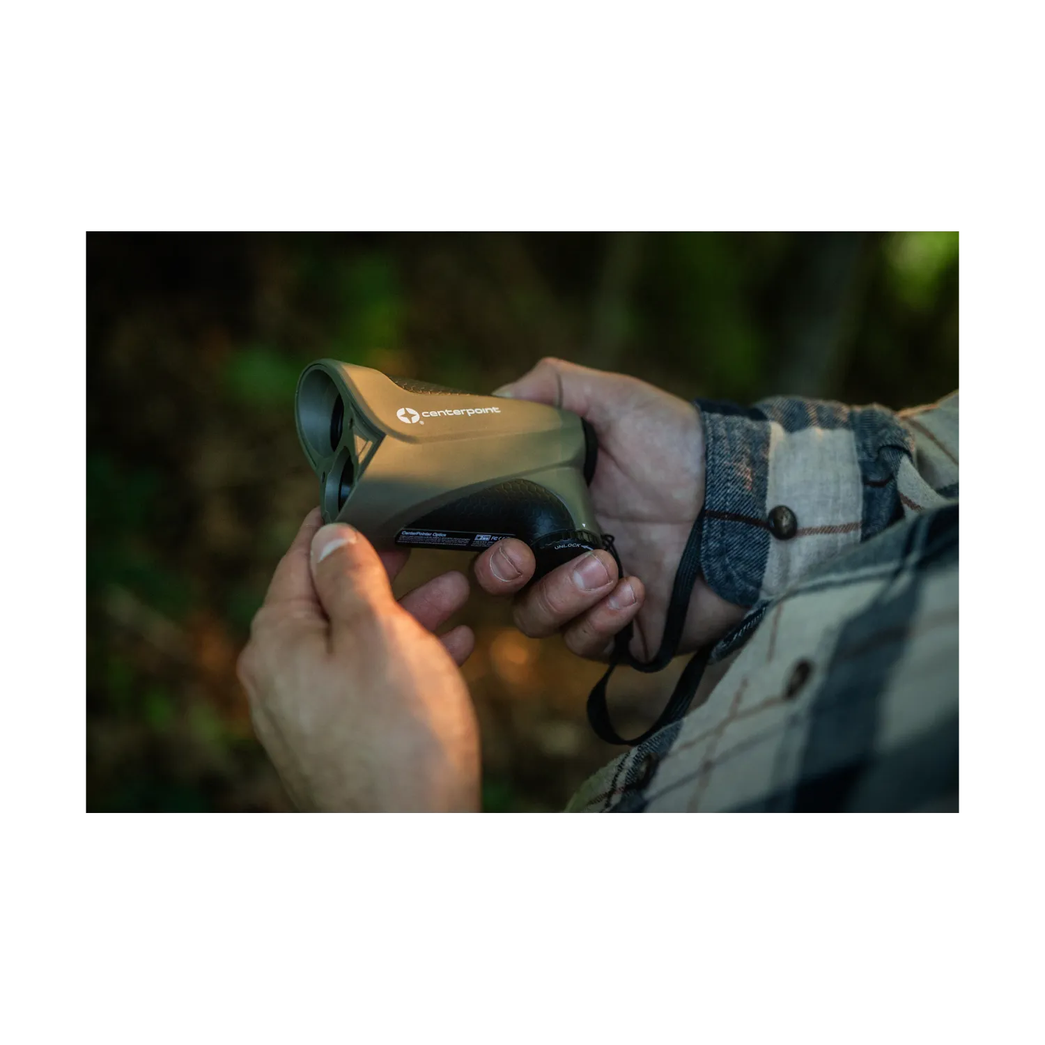 Impressive for distance and clarity, the CenterPoint Optics CPLRF6221K laser range finder boasts an impressive 1,100-yard ranging capability and integrated 6x magnification to bring even distant targets into clearer view. With enhanced versatility, the scan mode allows for continuous distance readings while panning across an area, perfect for tracking that elusive whitetail. The inclinometer accounts for angle measurements, crucial for accuracy on uneven terrain. Powered by a single CR2 battery (battery included) and designed with a weather-resistant, easy-grip case, the CPLRF6221K is simple to operate with or without gloves. User-friendly, intuitive controls and convenient displays in either yards or meters, will get you on target with confidence. You can trust CenterPoint Optics.