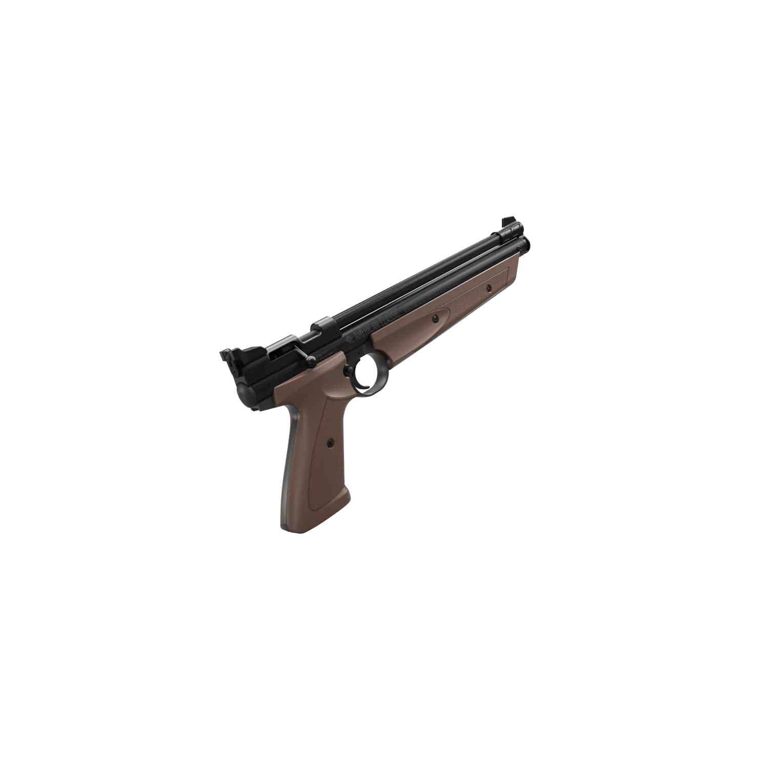 The Crosman 1377 Classic Brown combines proven performance with a classic look. This .177 caliber pellet pistol features a single-shot bolt action for easier cocking and loading, plus a rifled steel barrel for consistent accuracy.