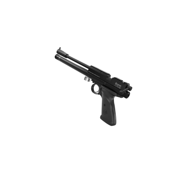 An intermediate-sized PCP pistol, the 1701P is dependable, accurate and provides almost no recoil. The redesigned front sight is infinitely adjustable and complements your choice of a precision rear sight.