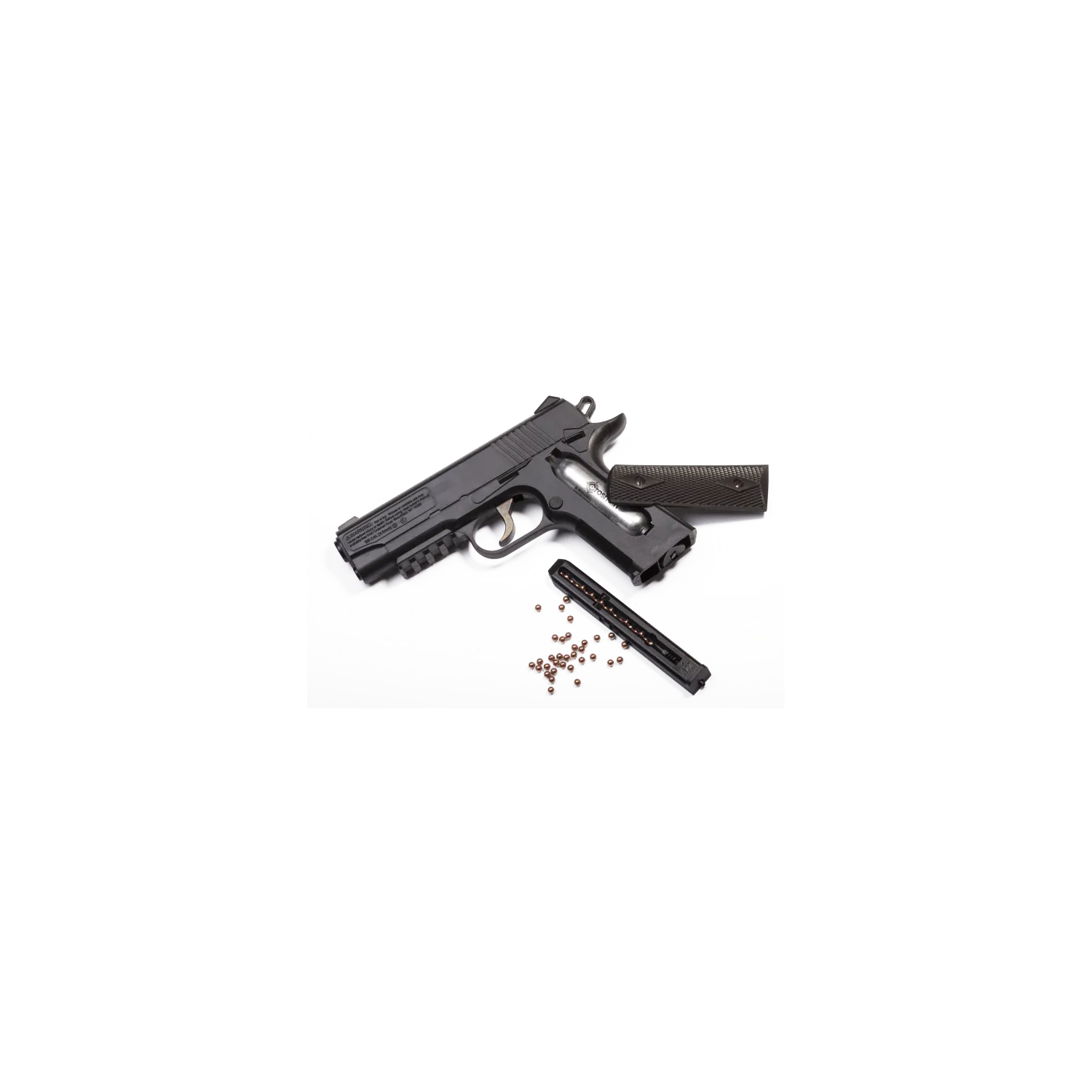 The 1911B CO2 Air Pistol is a faithful replica of the iconic 1911, offering a realistic shooting experience without the high cost or strict regulations of a firearm. This air pistol is powered by a CO2 cartridge, delivering consistent performance and a powerful blowback action that mimics the recoil of a real firearm.