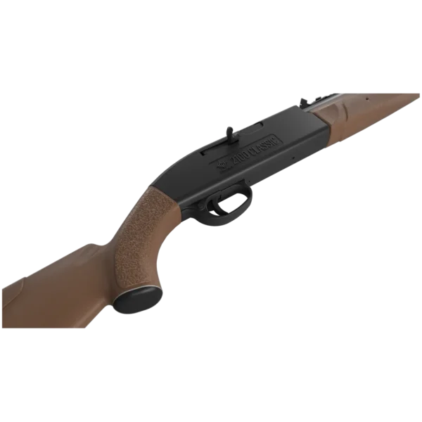 The Crosman® 2100 Classic is a full-sized, traditional style air rifle for the novice to the expert shooter, features an all-weather synthetic stock and forearm, rifled steel barrel, bolt-action pellet loader, spring-loaded BB magazine, built-in 850 BB reservoir, fiber optic sight front sight, adjustable rear sight, and cross-bolt safety. With easy-to-use variable pump features, you can control your power from 400 fps to 800 fps for everything from plinking to pest control. This repeater shoots BBs or .177 caliber pellets.