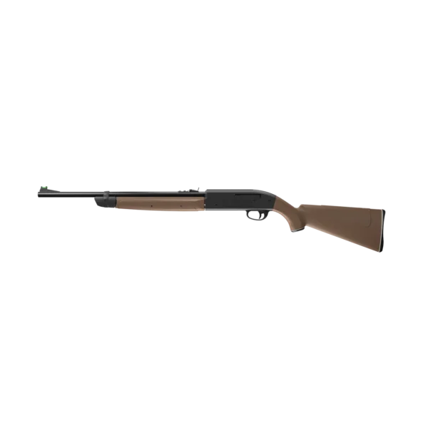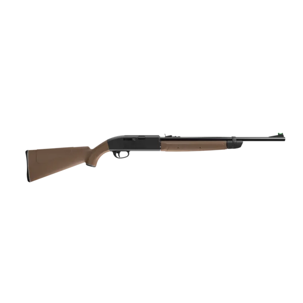 - Durable water-resistant, synthetic design in brown with a rifled steel barrel