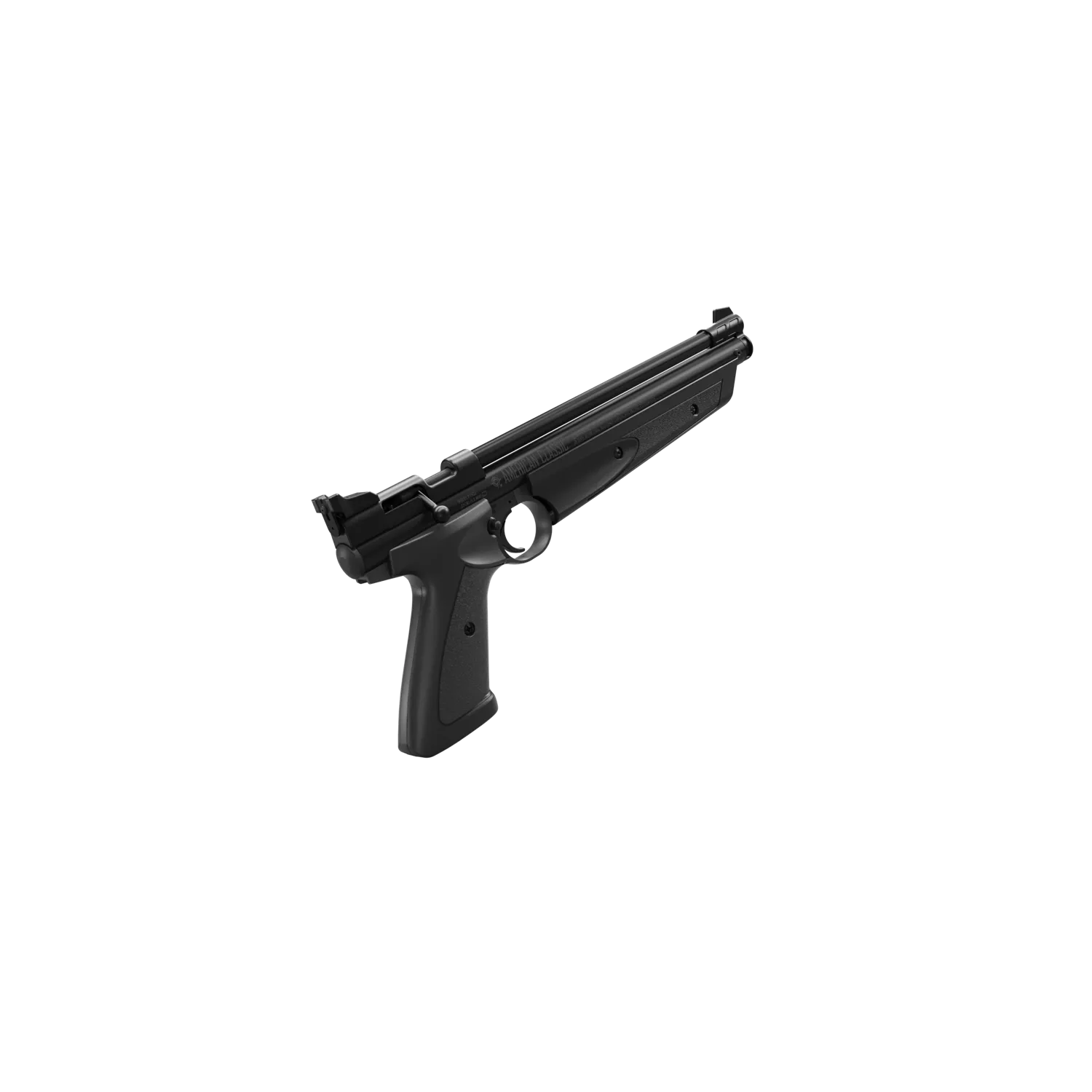 This Crosman .22 variable pump pellet pistol features a single-shot bolt action design that allows for easier cocking and loading, along with a rifled steel barrel for greater accuracy (supported by the fully-adjustable rear sight and fixed-blade front sight). Variable pump capabilities on this .22 pump pistol are delivered by means of an easy-pump forearm, helping you control velocity up to 460 fps so you can hit your mark with confidence.
