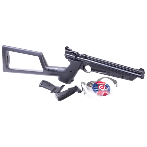 - The Classic Air Pistol Kit includes shoulder stock, pistol grips, shooting glasses and 175 rounds of .22 caliber pellets