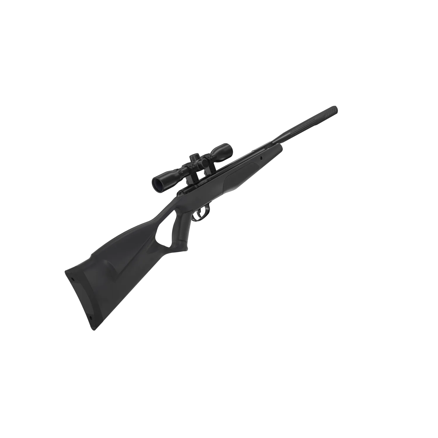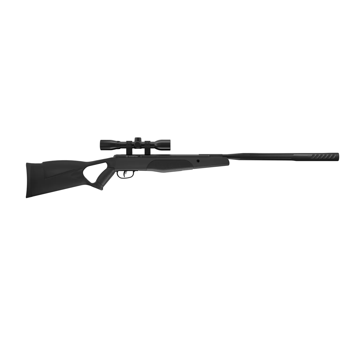 The Crosman F4 (.177) air rifle boasts a lighter and smoother cocking force than others in its class. It features our Nitro Piston and QuietFire technologies for reduced recoil and 70% less noise, a durable all-weather synthetic stock and foregrip, two-stage adjustable trigger, 4x32mm scope, and velocities up to 1200 fps.