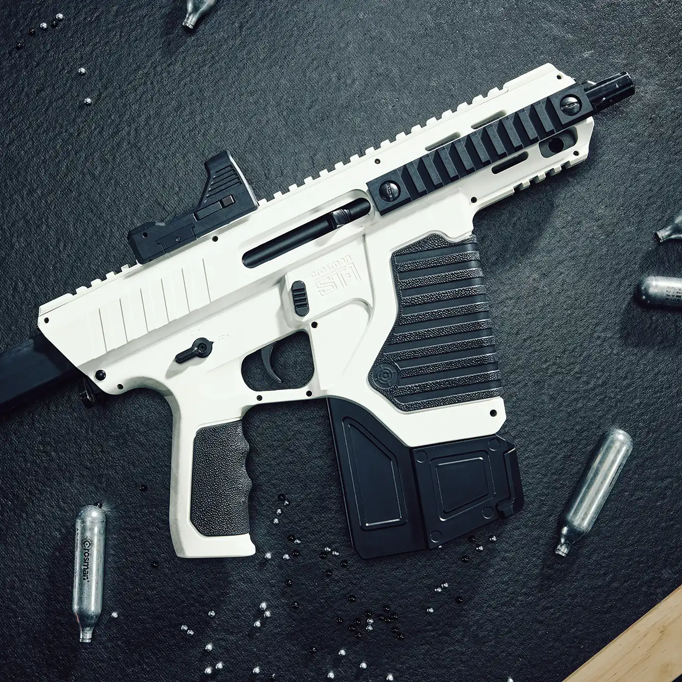 - Dual CO2 powerplant keeps your ammo slamming at up to 430 fps