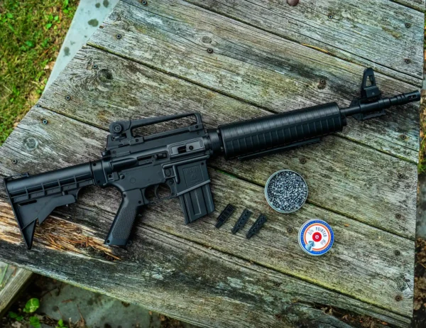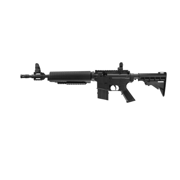 The Crosman M4-177 is the next great variable pump air rifle. With easy-to-use variable pump features, you can control your power from 350 fps to 700 fps for everything from plinking to pest control. This tactical-styled repeater shoots BBs or .177 caliber pellets and comes with a dual-aperture rear sight and an adjustable post-front sight to help you stay on target. Offering a rifled steel barrel with crossbolt safety and adjustable stock to fit every shooter. Comes with a removable carry handle, Firepower® 5-shot pellet clip, a removable magazine for pellet clip, and sight adjustment tool storage.