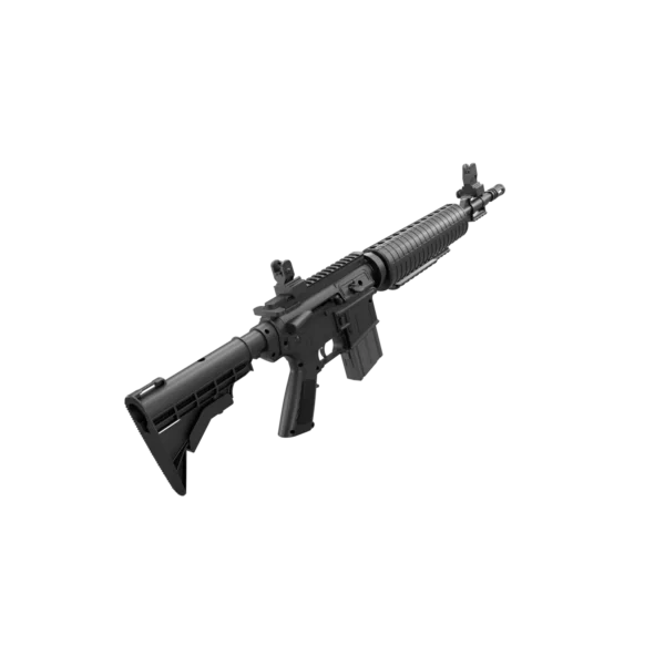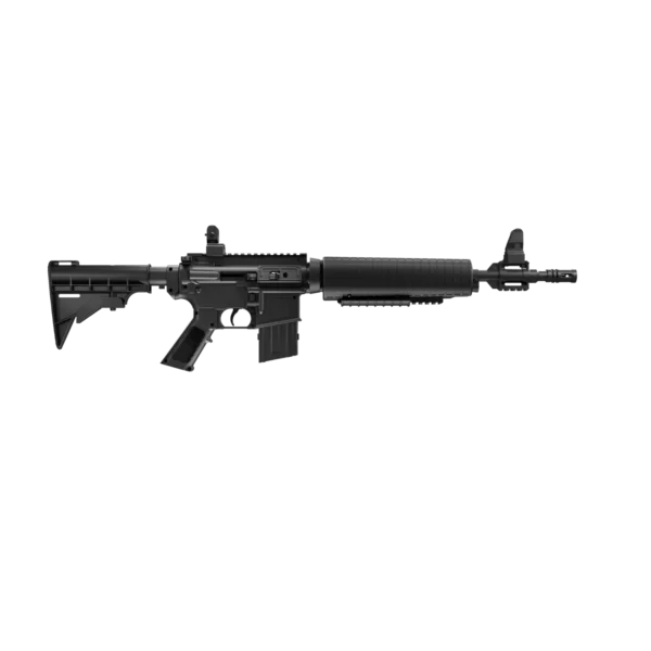- Durable, water resistant, synthetic, tactical design in black with rifled steel barrel
