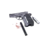 Magazine has slide lock and release allowing for easy loading of BBs.