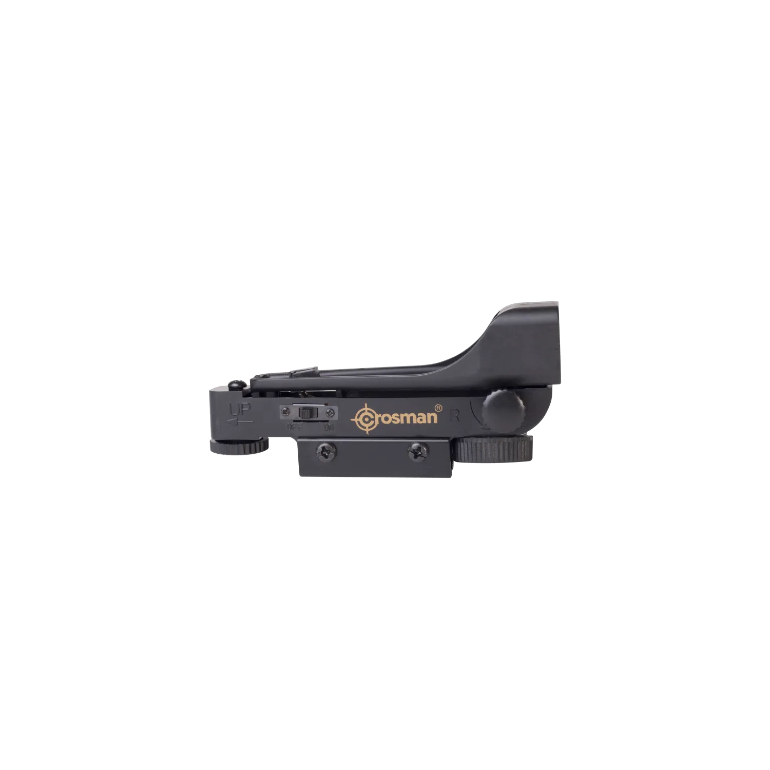Crosman’s enhanced open reflex sight features an easy-to-see single red dot with easy-to-use finger knob adjustments and a large lens for increased field of vision.