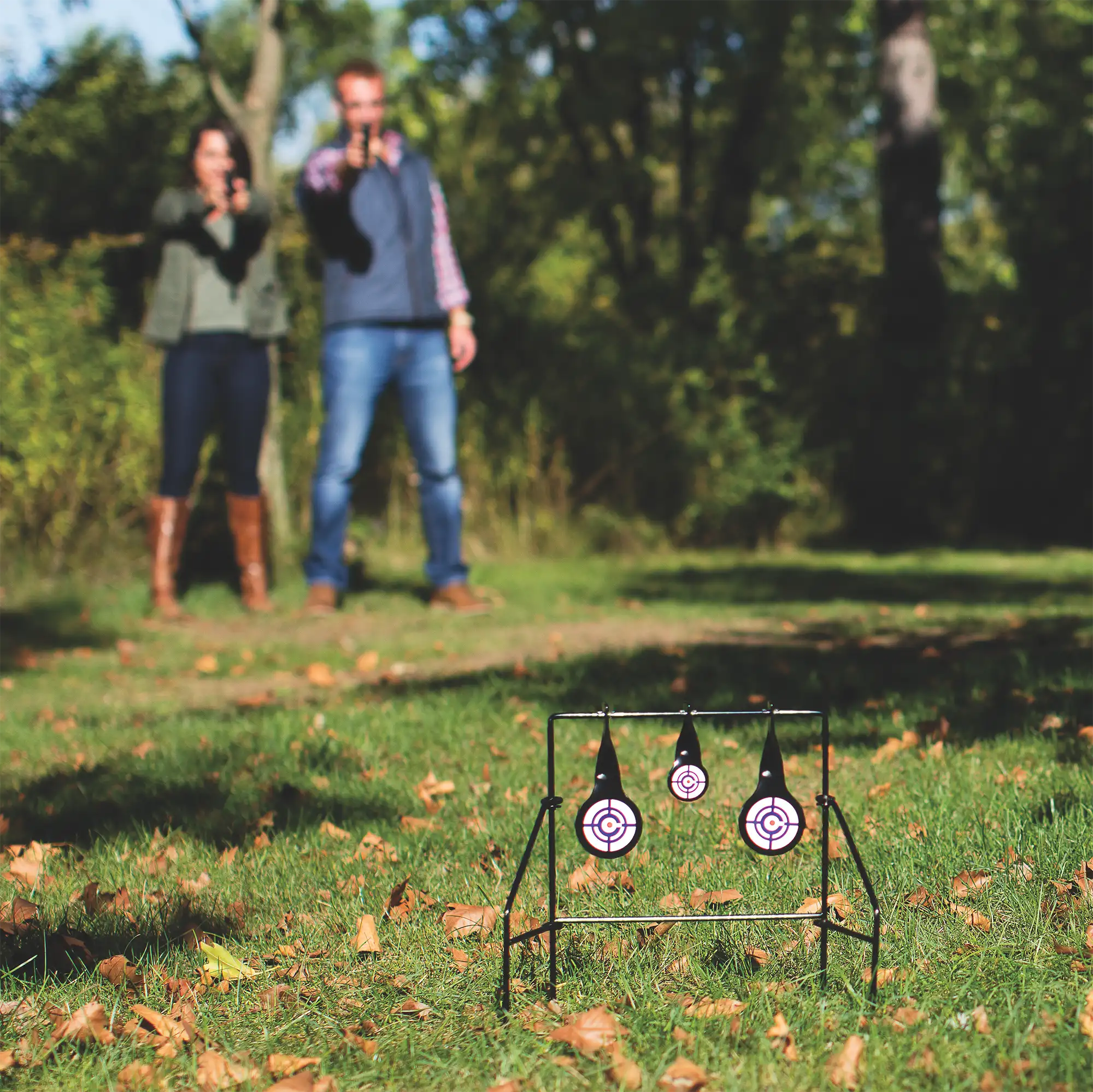 Featuring two different target face sizes, the system allows shooters to vary difficulty and challenge their accuracy as skills improve. Each hit sends the target spinning, providing immediate visual confirmation that keeps practice rewarding and helps reinforce shot placement.