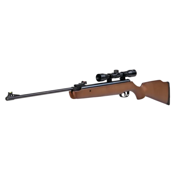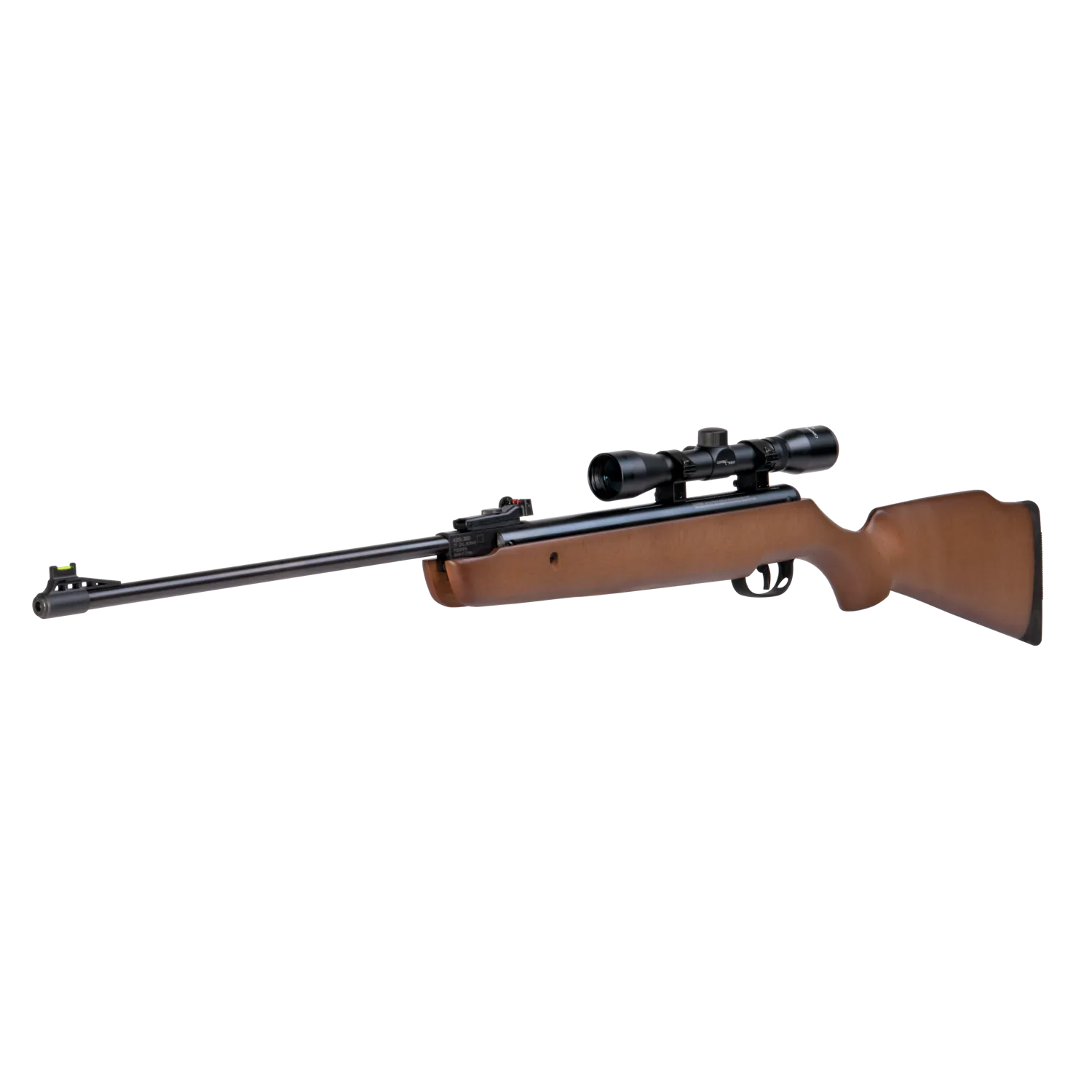 The Crosman Vantage Single-Shot Break-Barrel Air Rifle is powered by Nitro Piston Technology for reduced recoil and up to 70% less noise. The handsome wood stock and foregrip, rifled-steel barrel and lever safety offer a traditional feel. The Vantage features an adjustable two-stage trigger, fiber optic sights, Centerpoint 4x32mm rifle scope and fires .177 caliber pellets at speeds up to 1200 feet-per-second. This smoother-cocking, quieter rifle is ideal for small game hunting, plinking, spinners, and more! “Take It Outside” with Crosman.