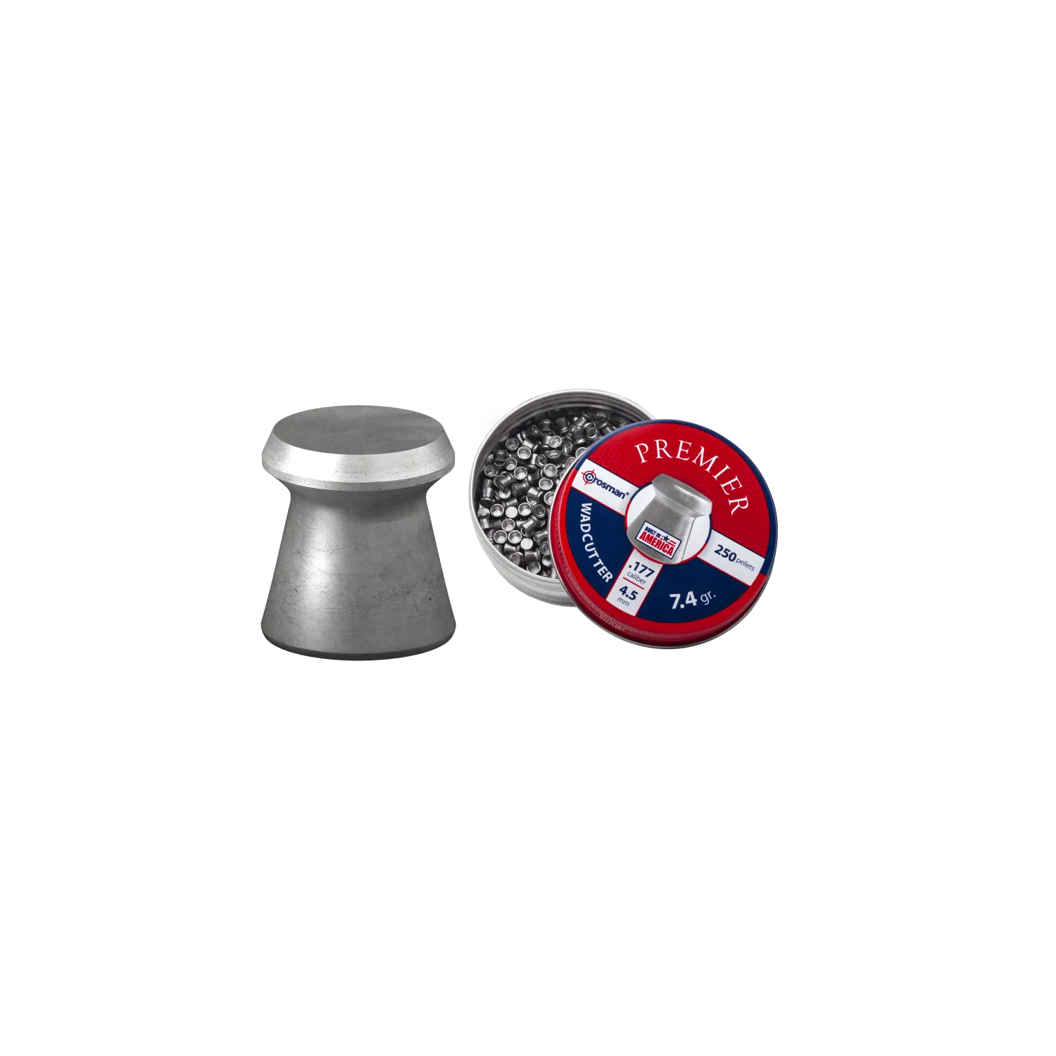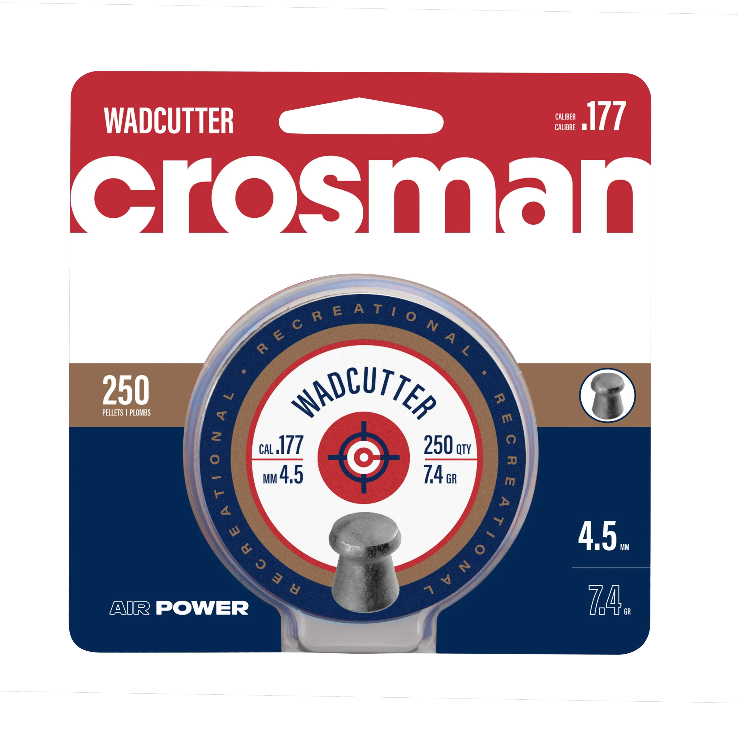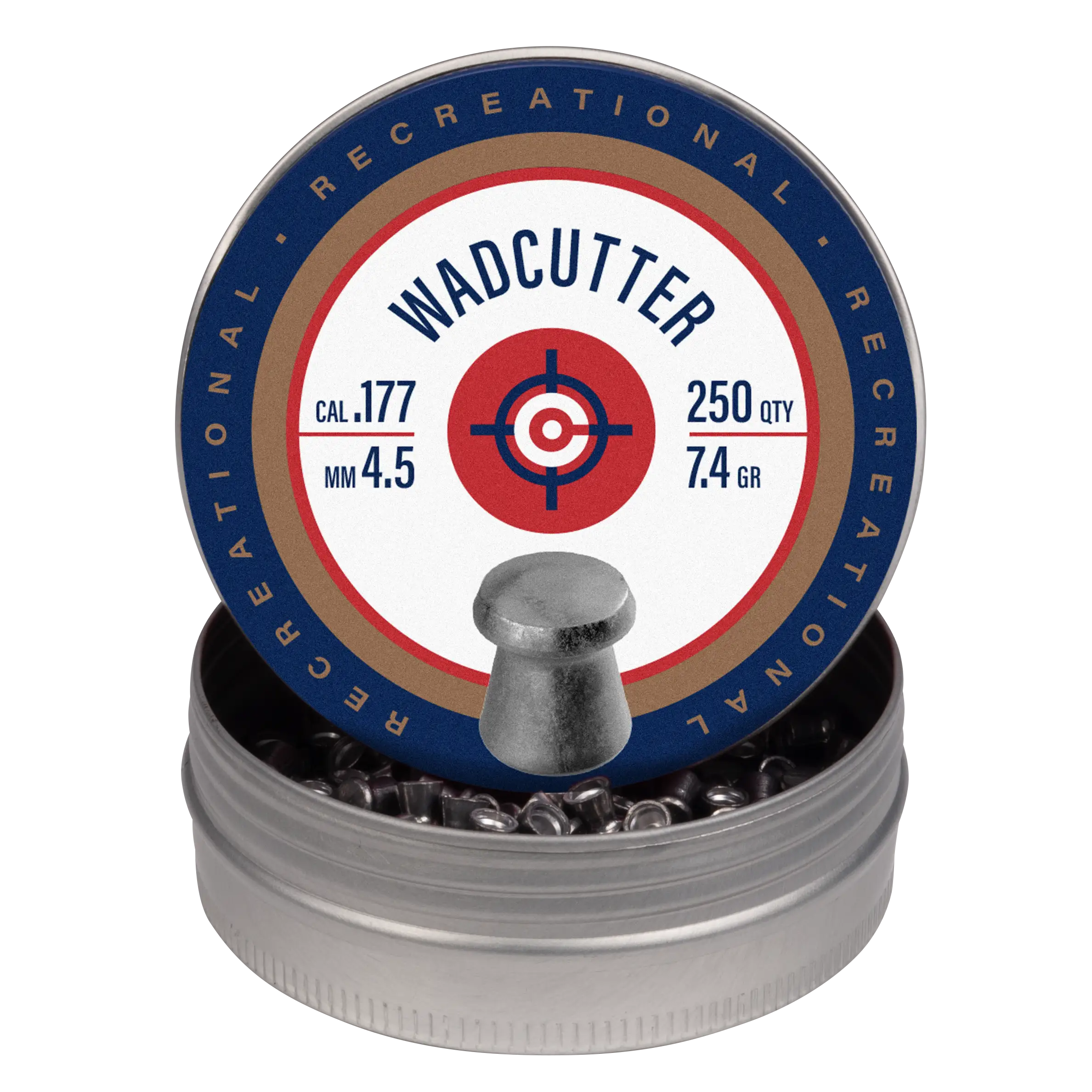 Wadcutter pellets are ideal for paper targets. The flat nose punches a crisper, rounder hole in paper targets, for easy scoring. 250 Wadcutter pellets in a tin.