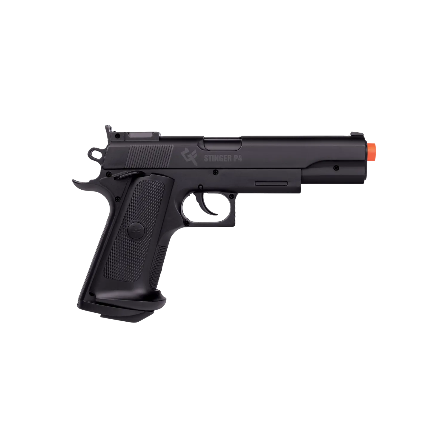 • Pistol features 14 round magazine and fixed blade front and rear sights